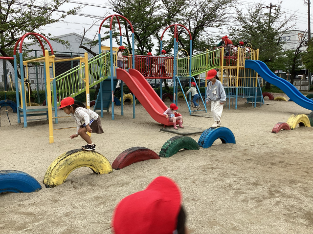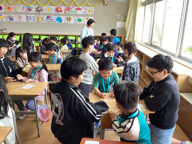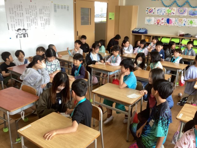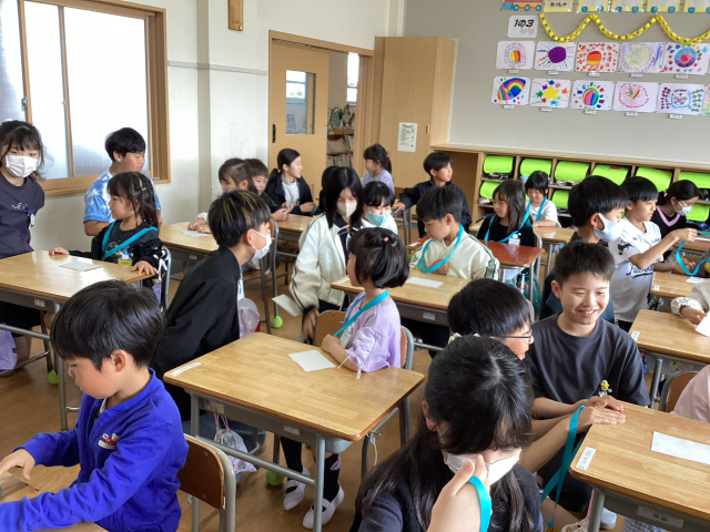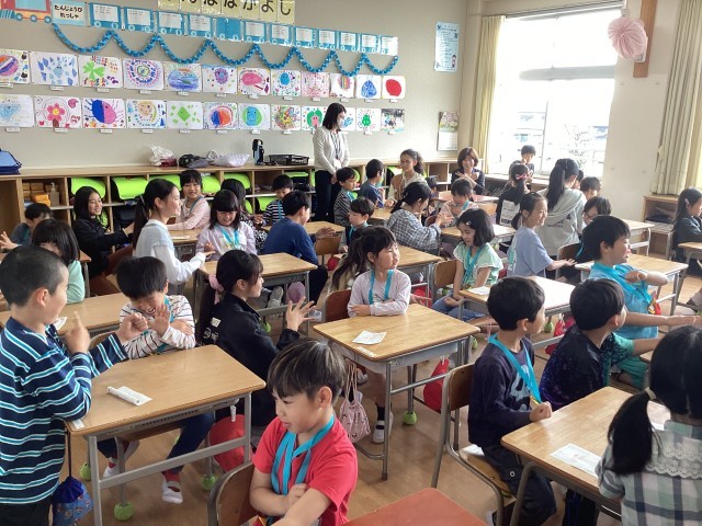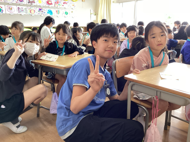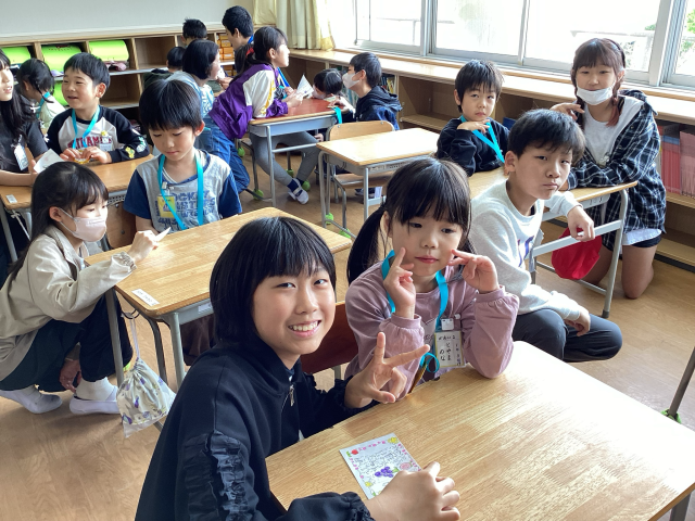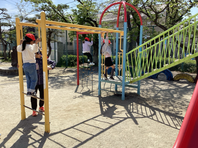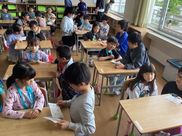 学校にも少しずつ慣れてきました。運動場で遊んだり、1年生を迎える会で6年生のペアの子と交流したりしました。