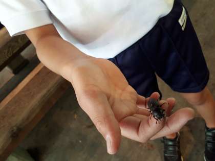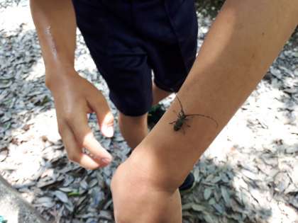 魚つかみを待っている間にコクワガタとカミキリムシを見つけました。