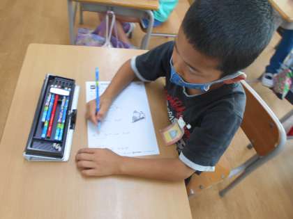練習通り、はらいやはね、形に気をつけて丁寧に書いていました。