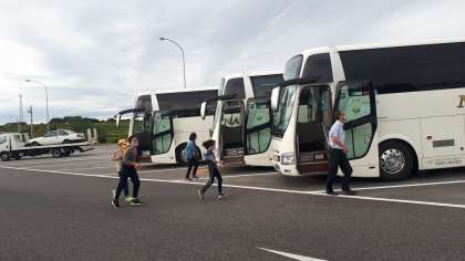 日曜日の朝ということで車の流れがよく、予定どおり阿久比PAでトイレ休憩。やや風があり、肌寒さを感じます。
