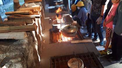 飯ごうでのごはん、ちょっとこげてしまった班もあるようです。カレーもグツグツ煮込まれています。