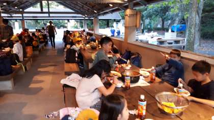 ごはんとカレーができあがり、班ごとに「いただきます」ちょっとごはんがこげていたり、カレーがしゃびしゃびだったりした班もあったようですが、自分たちで作ったカレーライスは最高でした。ちなみに校長先生が食べた12班のごはんとカレーは絶品でした。「ごちそうさまでした」