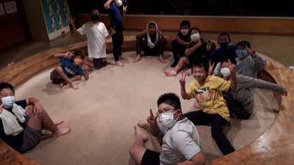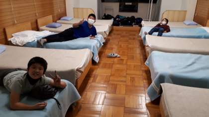 ファイヤーの後、順番に風呂に入りました。その後は部屋長会班長会まで少し時間があるので、それぞれくつろいでいます。