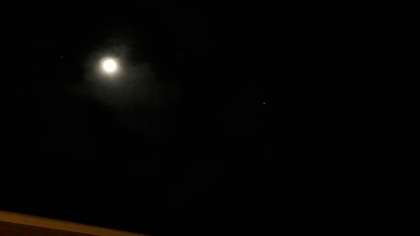 空には月がきれいに見えます。星もちらほら見えます。てるてる坊主のおかげで、明日もよい天気になりそうです。「おやすみなさい」