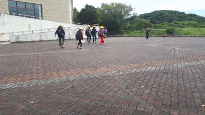 施設内のポイントと先生ポイントを探してのオリエンテーリング。楽しみながら施設内を回っています。