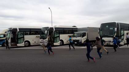 大府PAでトイレ休憩をとり、一路南小へ。学校到着は15時20分頃になりそうです。