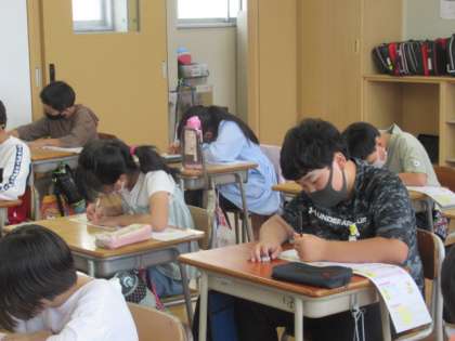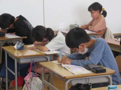 漢字ドリルを使って新出漢字を勉強しました。書き順に気を付けて、ていねいに書きました。