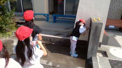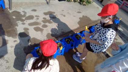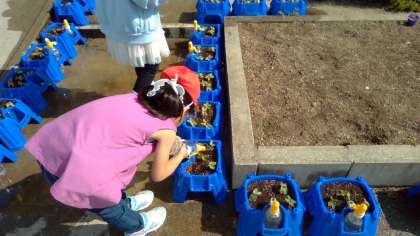 毎朝あさがおの水やりをがんばっています。芽が出てきました。元気に育ってね。