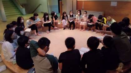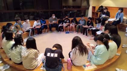 9時20分から班長部屋長会。この後の就寝から明日の予定を確認しました。明日の予定は、朝食、清掃の後、海での活動と山でのオリエンテーリングです。ゆっくり休んでください。「おやすみなさい」