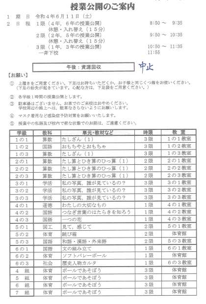 なお、午前中の授業公開は予定どおり行いますので、参観いただきますようよろしくお願いします。