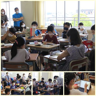 4年生は、道徳と国語の授業でした。話し合い隊形になって、お互いの疑問を投げかける様子や自分の大切なものについて発表しながら、お互いの違うところを認め合うことについて学んでいました。