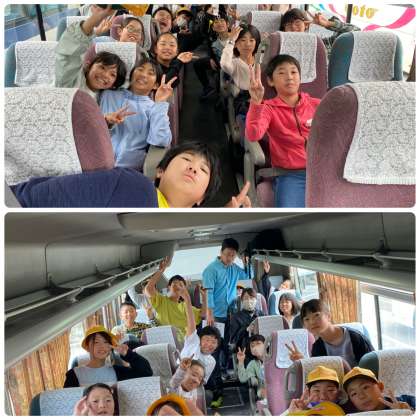 阿久比のサービスエリアでトイレ休憩をしました。1号車の様子です。みんな元気です。