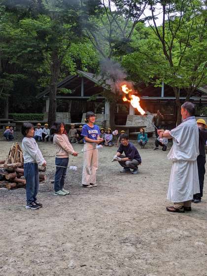 火の神より火を授かり、キャンプファイヤーの始まりです。