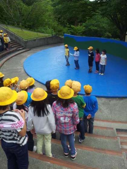 午後2時、退所式で自然の家の皆さんに感謝の気持ちを伝えました。