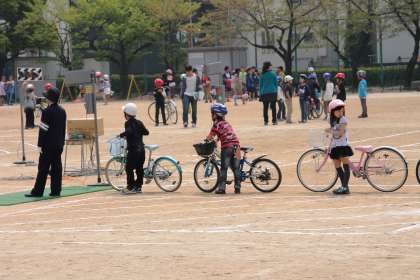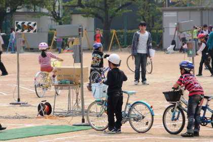3・4年生は、自転車の乗り方についての実地訓練を行いました。