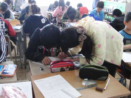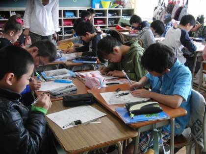 わからないところは,グループで教え合い,みんなで線対称な図形がかけるようになりました。