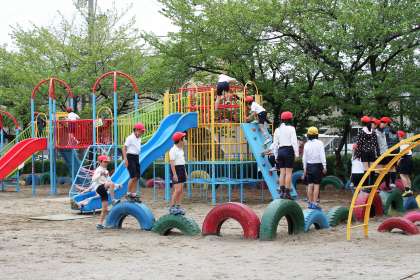 新しい遊具を、うまくサーキット・トレーニングに活用しています。
