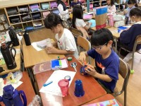 「きんぎょの あぶく」という詩を読んで、イメージしたことを一人一人が絵で表しました。それをグループで見せ合って話し合いをしました。話し合いの中で、イメージがまた広がったり、深まったりしているようでした。