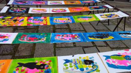 思い思いの色に塗られた鯉のぼり。できあがりが、楽しみです。