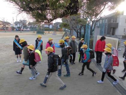 毎月のはじめには、PTA委員さんと生活委員全員とであいさつ運動を行っています。元気なあいさつができると、みんなが明るい気持ちになりますね。元気がないときも、あいさつをすると元気が出てきますよ。