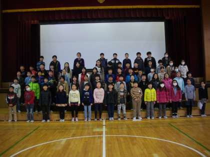 本番の隊形になって練習しました。合唱や呼びかけの声も、少しずつ大きくなってきました。