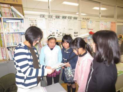 1年間、国際理解の授業でお世話になった西宮先生に、4年生全員で書いたお礼の手紙を渡しました。