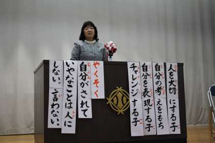 12名の先生が転退職され、代わりに10名の先生が着任されました。校長先生から紹介があり、1人1人から話を聞きました。始業式では校長先生から、目指す子ども像と、やくそくの話を聞きました。その後、担任の先生の発表がありました。