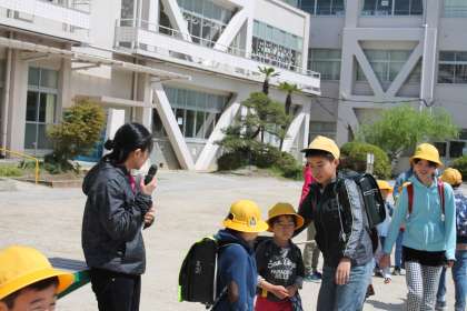 一斉下校の時には高学年の班長さんが1年生のお世話をしています。