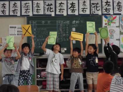 英語で数を言いました。足し算・引き算・かけ算・割り算の式を作り,英語で言いました。