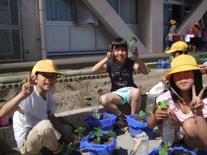 抜いた苗を持ち帰る子はパックやカップに入れて、うれしそうにしていました。