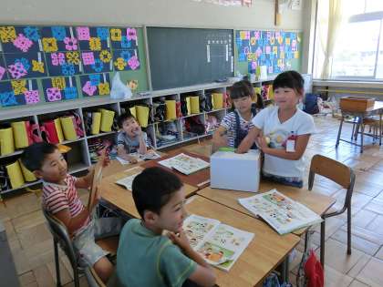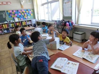 算数で,形探しをしました。筒のかたち,箱の形、手で形を確かめて当てることができました。見えないのでどきどきしました。