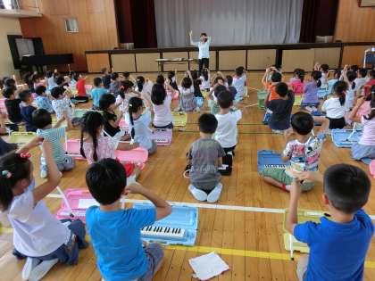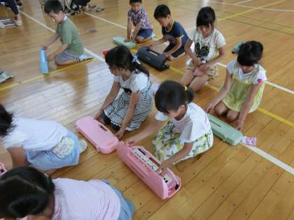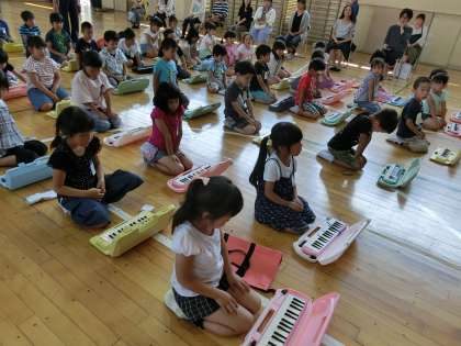 水谷先生から,鍵盤ハーモニカの使い方と正しいタンギングを教えてもらいました。短い時間でしたが,きれいな音の出し方がすこしわかりました。これからいろいろな曲の演奏にチャレンジしていきます。