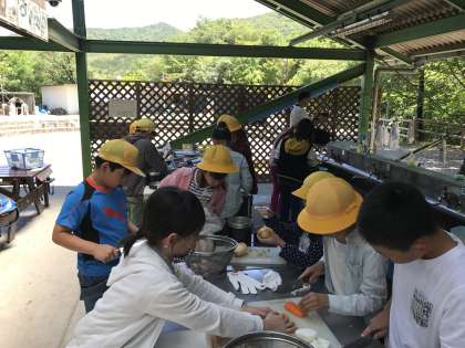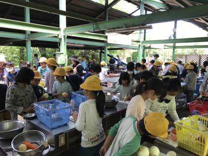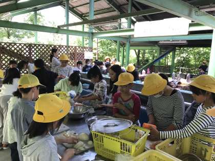 美味しいカレーになるように、みんなで相談しながら野菜を切っています。