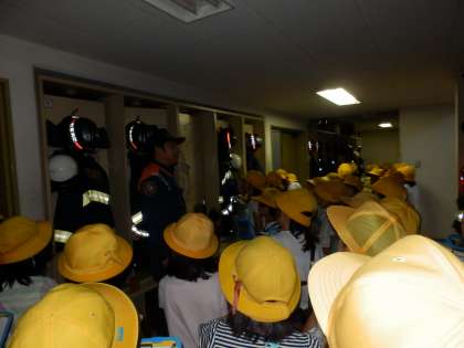 社会科見学で岩倉市消防署に行きました。消防署では消防署内の話や車両の説明を聞きました。消防士さんや消防車はよく見かけますが,消防士さんから話を聞くことはないので,子どもたちは大興奮でした。