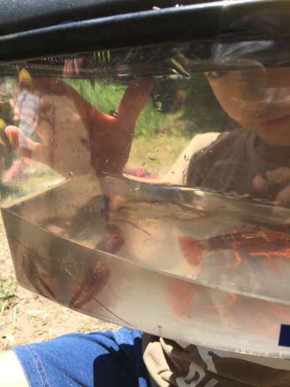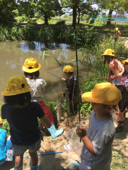 今日は、2時間目から4時間目まで、岩倉自然生態園へザリガニ釣りに行きました。天気にも恵まれ、班で協力して楽しくザリガニを釣ることができました。歩いて行ったので、よい運動にもなりました。