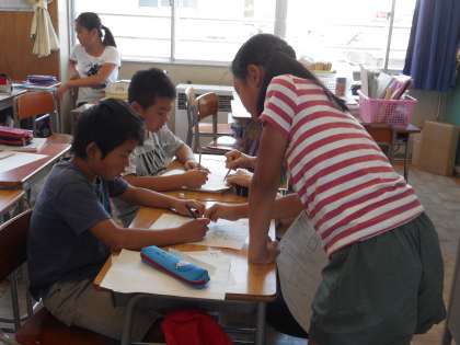 算数の授業で早く問題が解けた子が問題を一生懸命に考えている友達を自発的に教え合う姿がたくさん見られるようになりました。とても優しく教えてくれています。