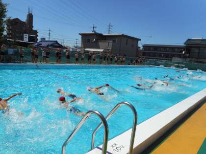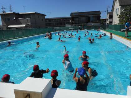 水泳の授業がありました。体慣らしをしたあと、3つのコースに分かれて練習をしました。最後は自由時間でした。自由時間はやっぱりとても楽しそうでした。