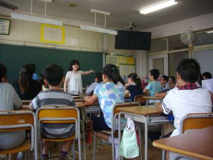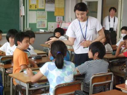 岩倉中学校の英語科教員による出前授業を行いました。「You」「They」などが何を表しているか、身振り手振りで表現しました。どの児童も楽しく学ぶことができたようです。
