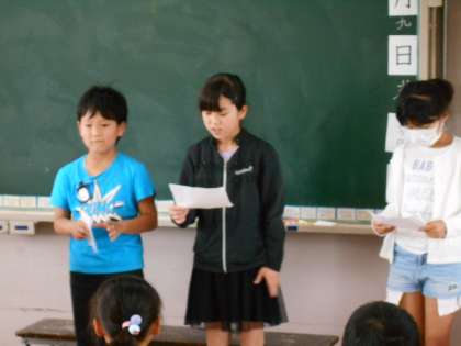 代議員として初めての仕事をしました。明日から始まる緑の募金についてペア学年に説明をしました。緊張した様子でしたが,高学年らしく上手に説明することができました。