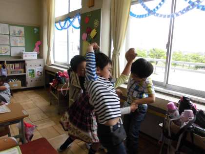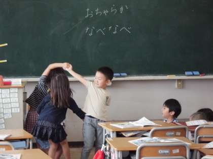 音楽の学習で「わらべうたであそぼう」をしました。なべなべそこぬけでは,4人から24人まで成功しました。おちゃらかも大きな声で歌って楽しみました。
