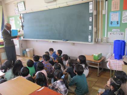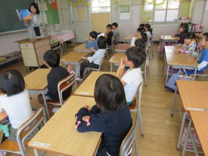 朝の時間に,図書ボランティアの方々に読み聞かせをしていただきました。