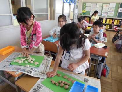 1年生 ずこうで ねんどをつかったよ