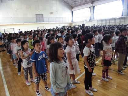 朝の全校集会で,いつも練習をしている「ビリーブ」を歌いました。どの学年も元気な声が出ていました。