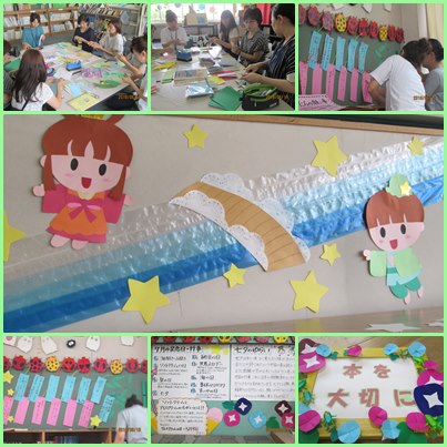 七夕の飾り付けをしました。先生方の願い事もあります。