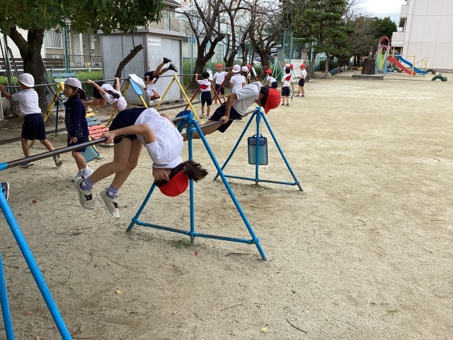 鉄棒の学習が始まりました。自分自身の目標を立てることができたようです。