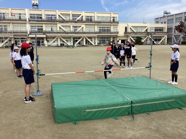 走り高跳びが始まりました。右左どちらの足が跳びやすいか考えながら跳びました。