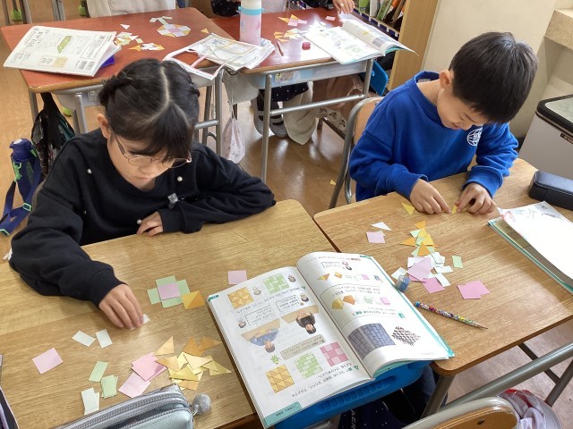 色紙を隙間なく敷き詰めて、模様づくりをしました。