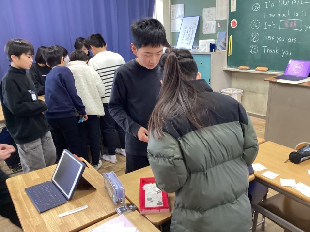 先日、国際交流の授業がありました。クリスマスに関連したカルタを楽しんでいる様子で...