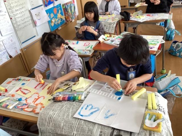 図工で水墨画に挑戦しました。今回は、筆や割り箸、段ボールやストローなど、様々な道...