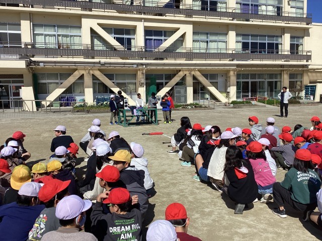1年生最後の読み聞かせがありました。大きな絵本を楽しんでいます。